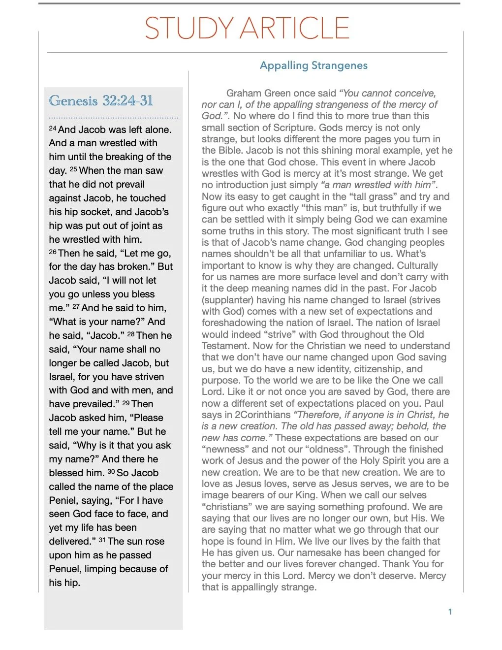 We believe that "discovery" is always the best teacher. Whether it's the Bible or other areas of our lives, when we discover things we tend to hold on to them. The study articles are designed to be thought provoking. Making us dive deeper into God's Word and ask the question "what are the scriptures saying here?" There are truths to be pulled out of the Scriptures and those truths laid over our lives prompt us to action. The Bible is not a dusty old relic to be read only in times of distress, or heartache but is what we mold our faith and our lives around.